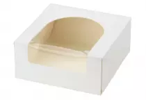 La boîte pâtissière avec sa fenêtre en cellophane facilite le transport et la visibilité de vos produits.